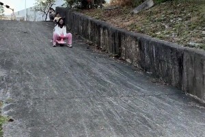 女子开扭扭车下坡刹不住,两人直接弹飞