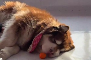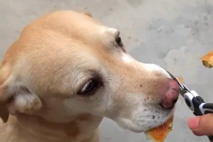 女子喂小狗,它刚要庆祝竟一脚踢跑食物